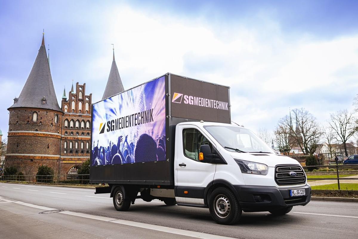 • Nutze dieselbe LED-Fläche erst fahrend im Stadtverkehr und später als stationäre Werbefläche auf Deiner Veranstaltung.